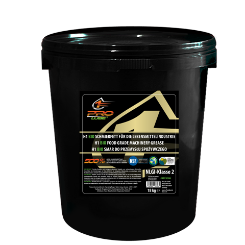 ProLube ® Bio Universeel Smeervet voor de voedingsindustrie NSF H1 is een smeervet van de PREMIUM klasse, gebaseerd op organoclay complex. Dankzij additieven van de hoogste klasse is het bestand tegen extreme belasting, stoom, zuren en alkalische substanties. Het werkt corrosie tegen en is een antioxidant. Het is bestemd voor gebruik in hoge temperaturen, is bestand tegen warm en koud water en spoelt niet weg. Het kan gebruikt worden op alle elastomeren, kunststoffen en alle metaalsoorten. Dit smeervet zorgt voor het beste rendement in de voedingsindustrie. Geaccepteerd door USDABioPreffered®, NSF International® voor incidenteel contact met voedingsmiddelen. Geschikt voor de voedingsindustrie (landbouw, suikerindustrie, vleesindustrie, groente en fruit verwerkende industrie, vet- en olie-industrie), evenals de kosmetische en farmaceutische industrie.